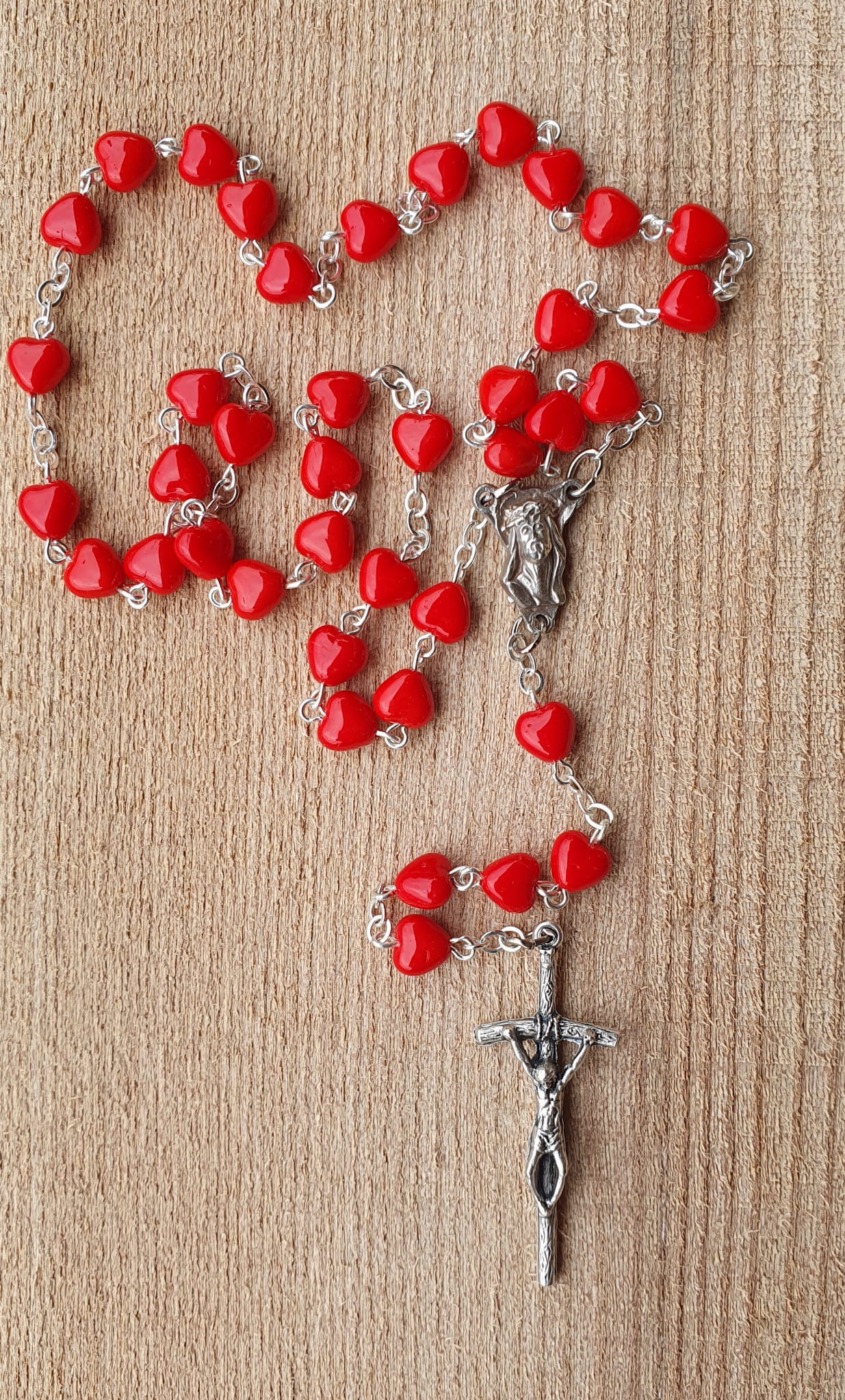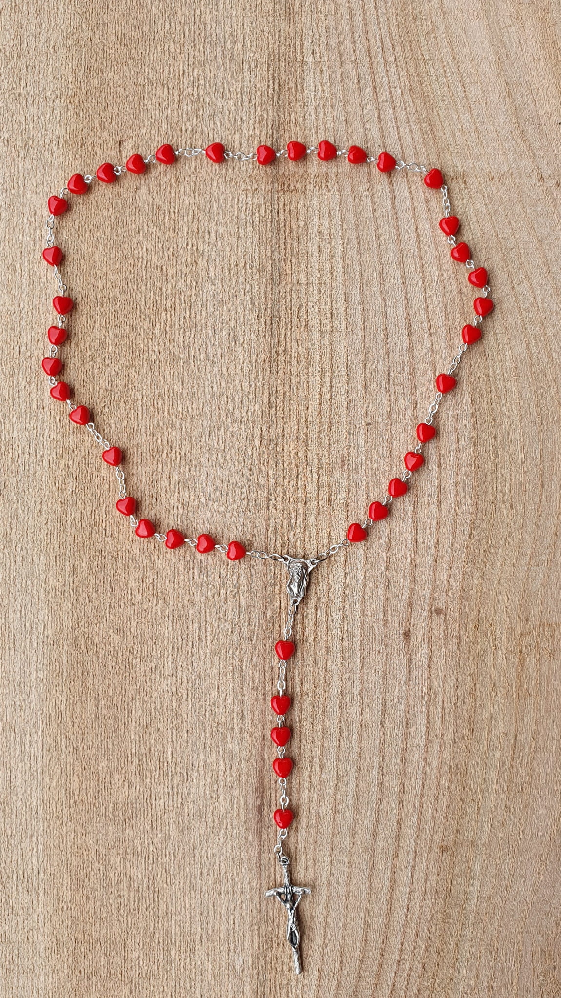 Koronka składa się z 6 części po 5 paciorków czerwonych w kształcie serduszek.