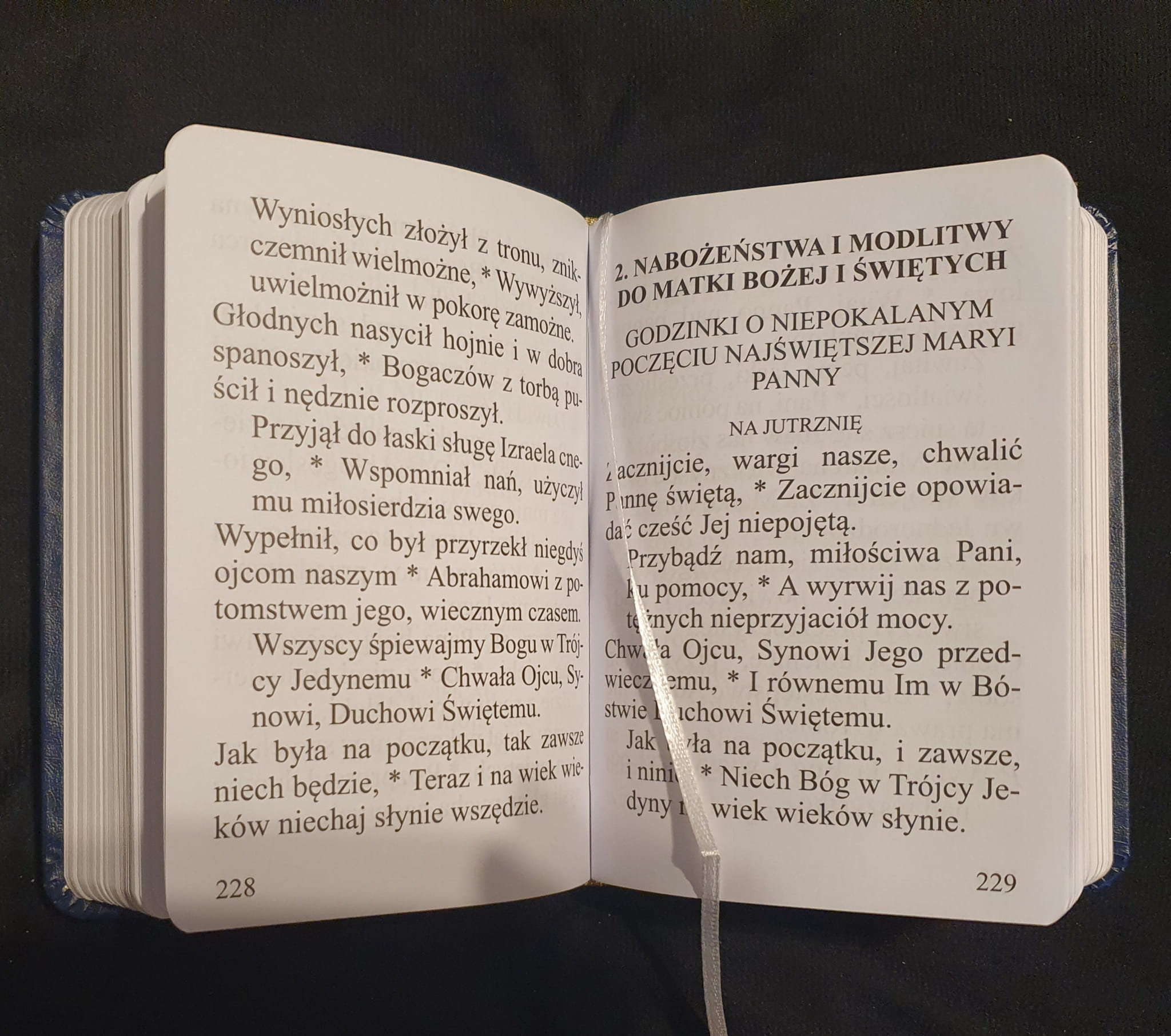Przepięknie wydany i poręczny modlitewnik. Oprawiony w sztuczną skórę, ma zaokrąglone rogi okładki, złocone napisy i ornamenty na okładce oraz złocone brzegi kartek. W środku wygodna tasiemka - zakładka.