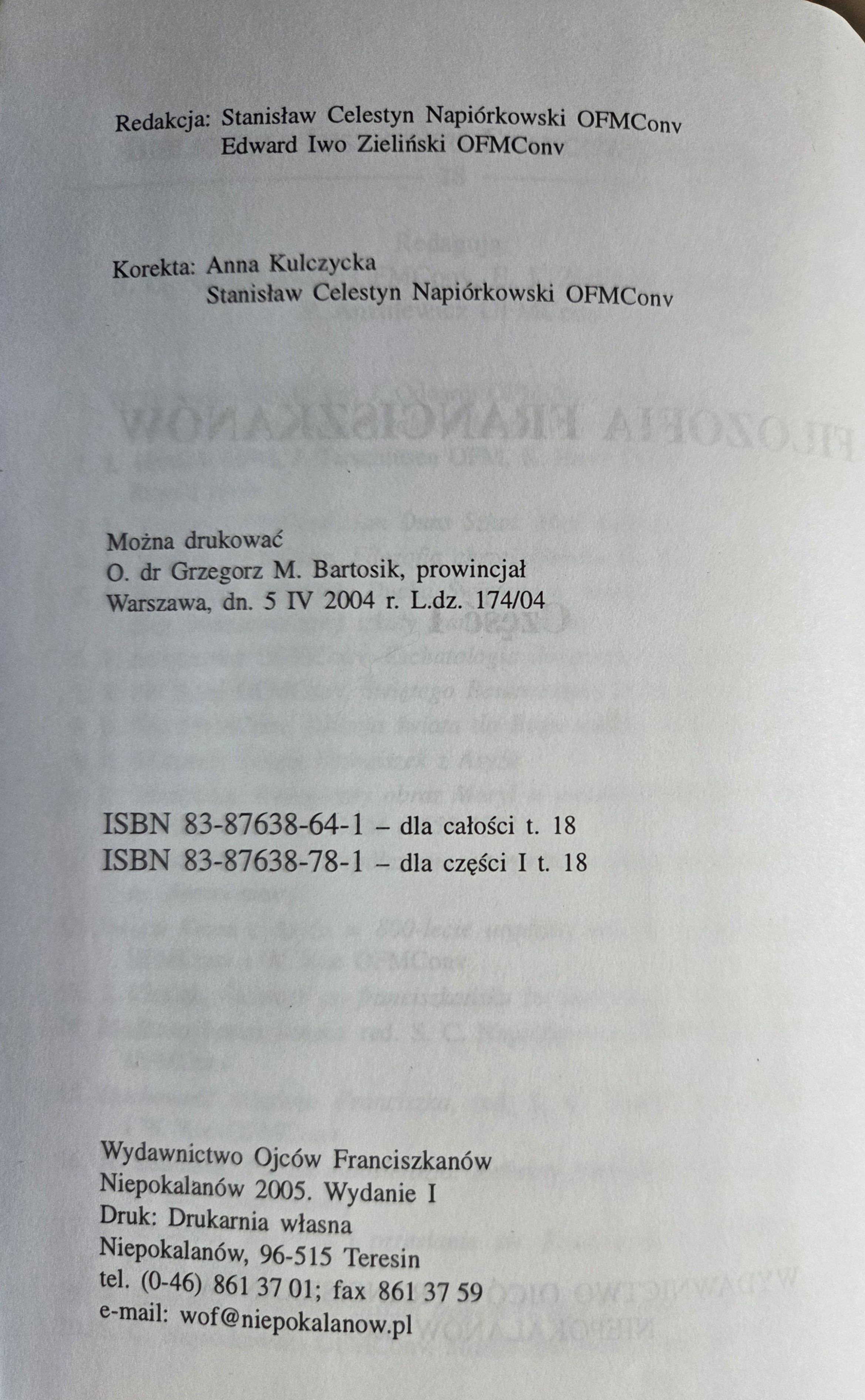Tytuł: FILOZOFIA FRANCISZKANÓW - część I
