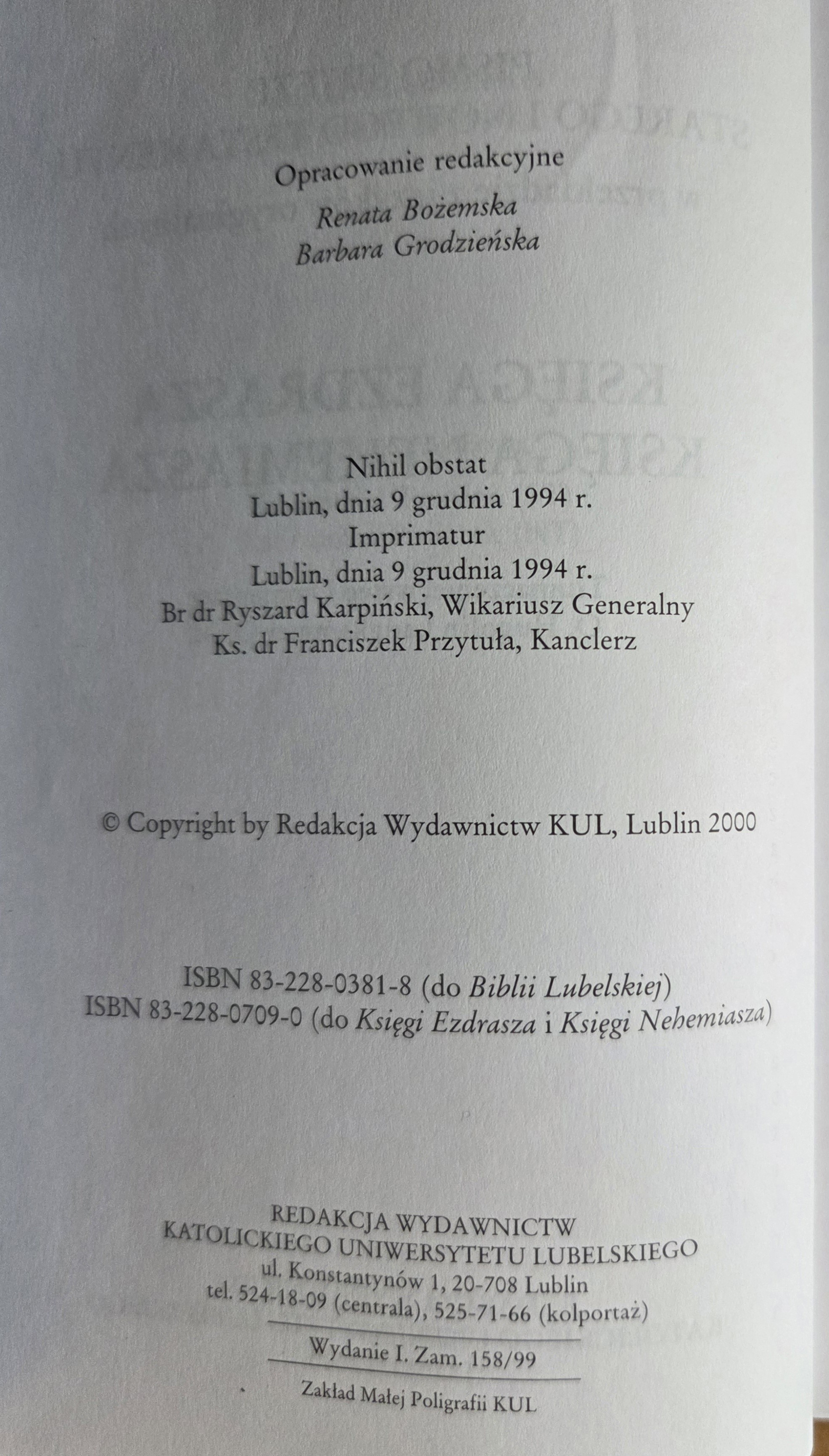 Tytuł: Pismo Święte Starego i Nowego Testamentu w przekładzie z języków oryginalnych. KSIĘGA EZDRASZA, KSIĘGA NEHEMIASZA.