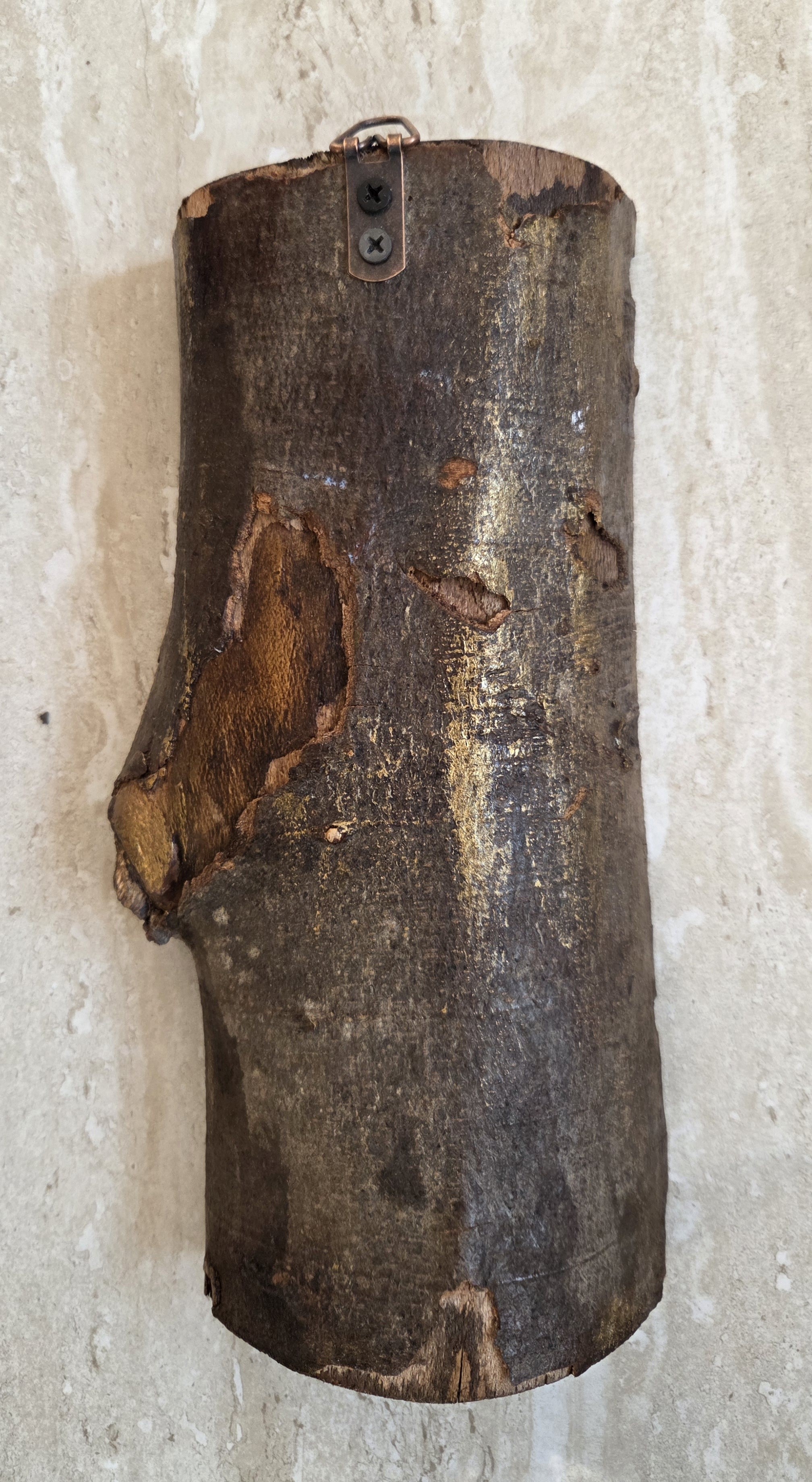 Z tyłu solidna zawieszka. Do zawieszenia na ścianie jako kapliczka. Można powiesić także na zewnątrz, gdyż drewno jest zabezpieczone przed wpływem warunków atmosferycznych.