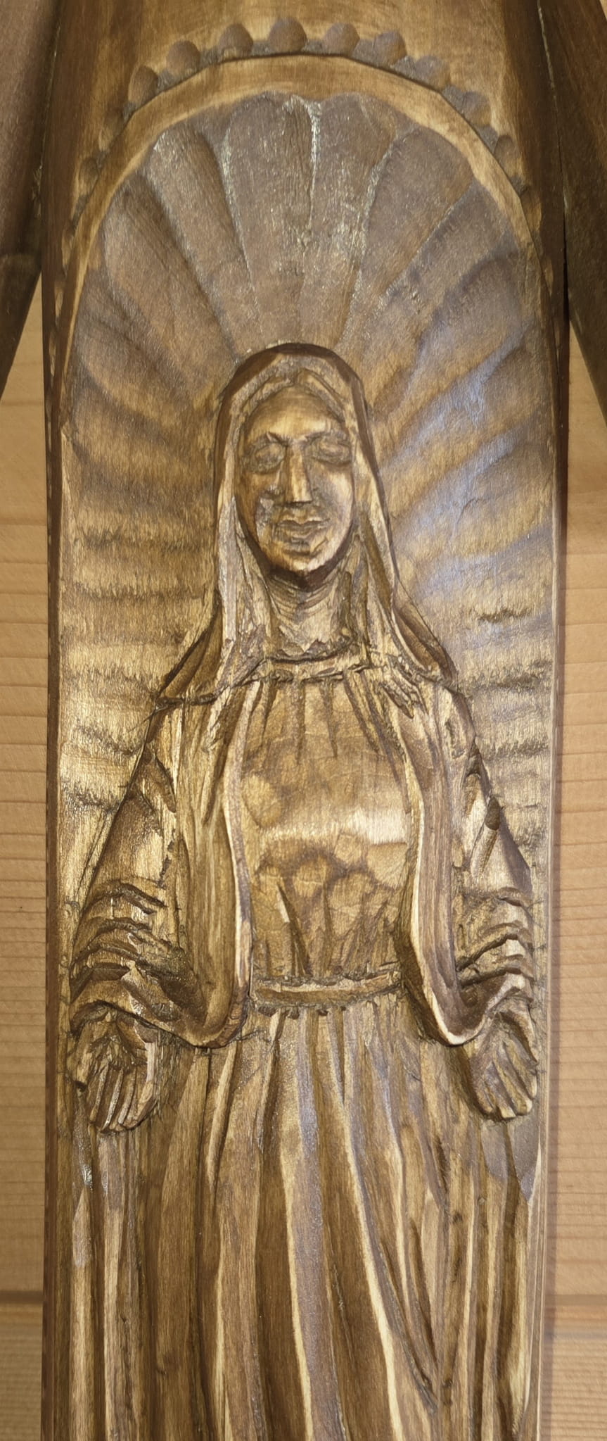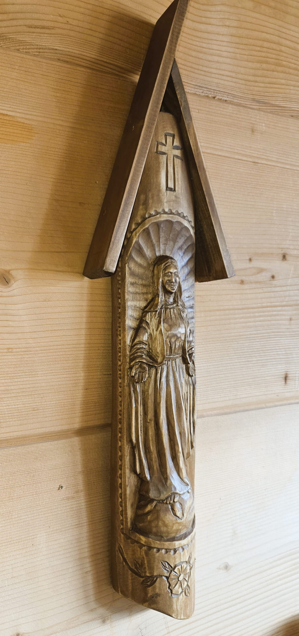 DREWNIANA FIGURA MATKI BOŻEJ - RZEŹBIONA RĘCZNIE - kapliczka do powieszenia- 70 cm