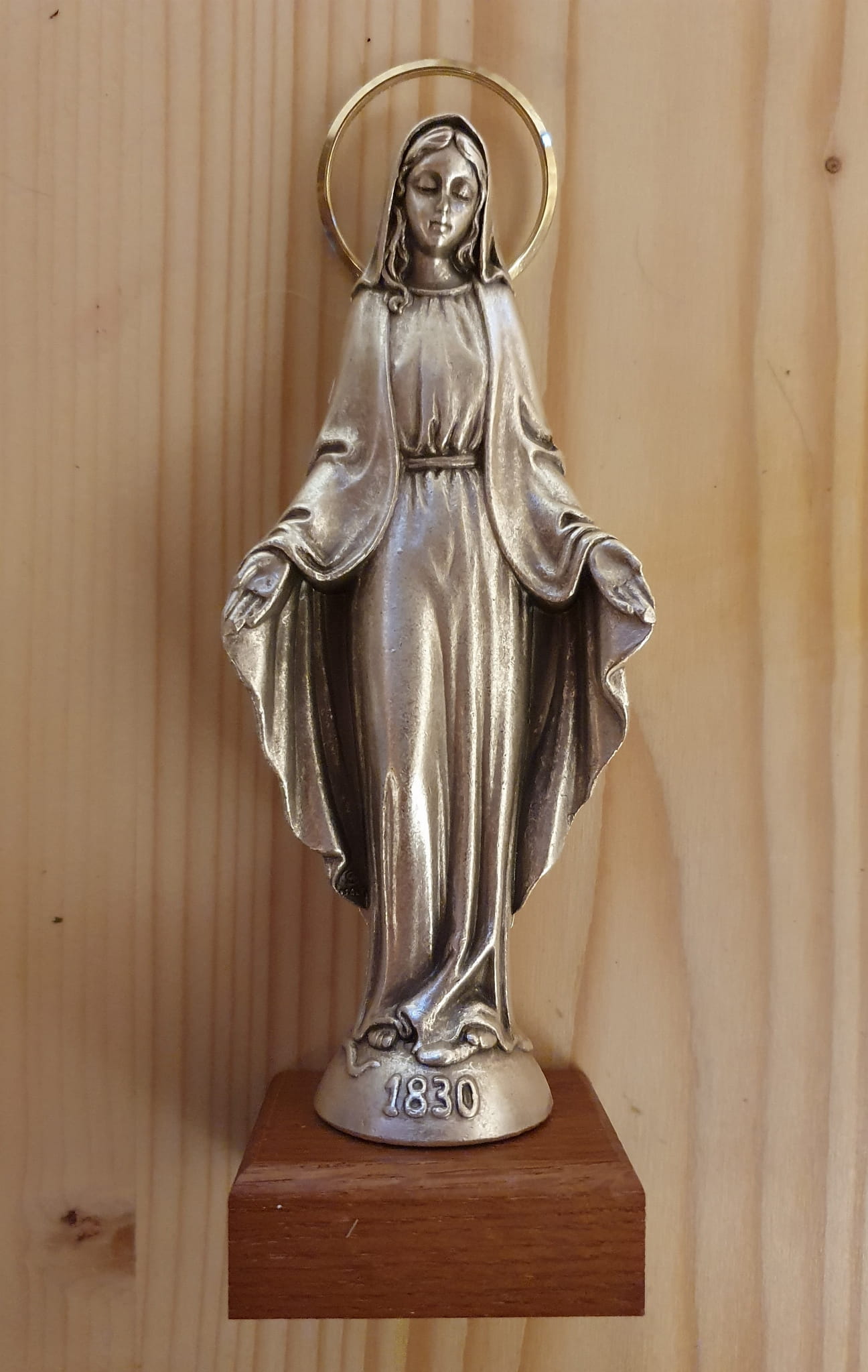 U podstawy figurki widnieje data "1830" - na pamiątkę objawienia się Matki Bożej Niepokalanej świętej Katarzynie Laboure 27 listopada 1830 roku.