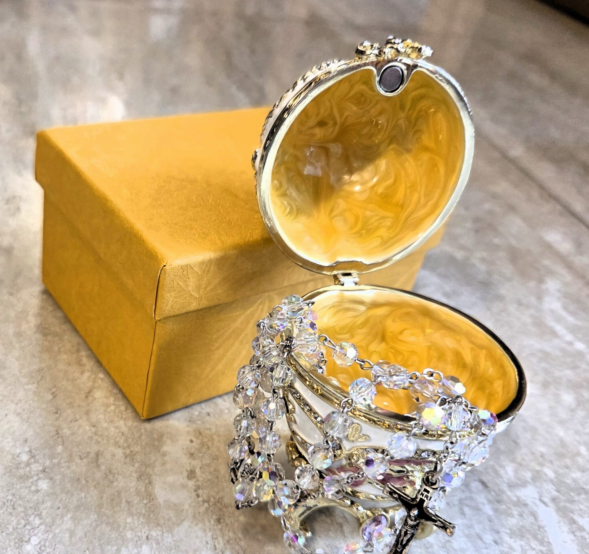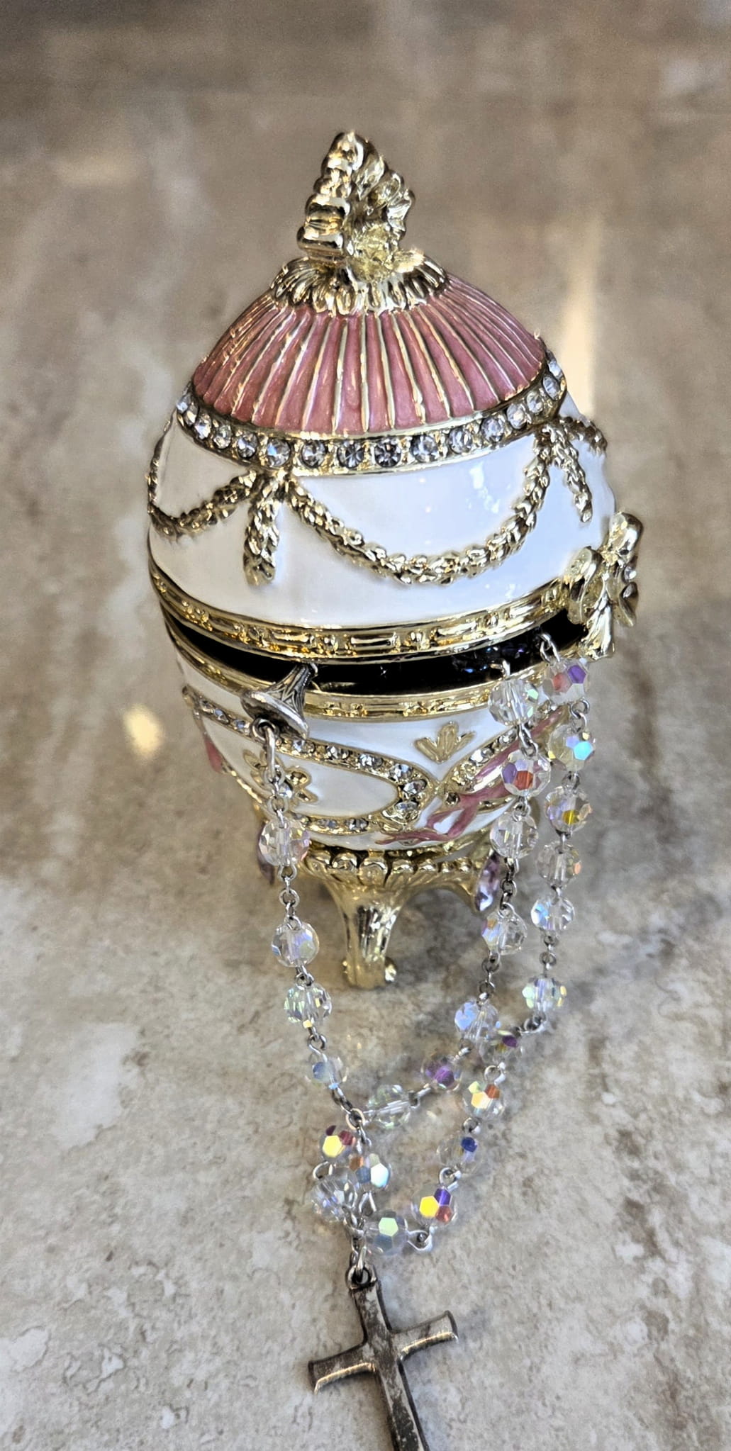 Piękne opakowanie na różaniec - jubilerskie jajo w stylu Faberge.
