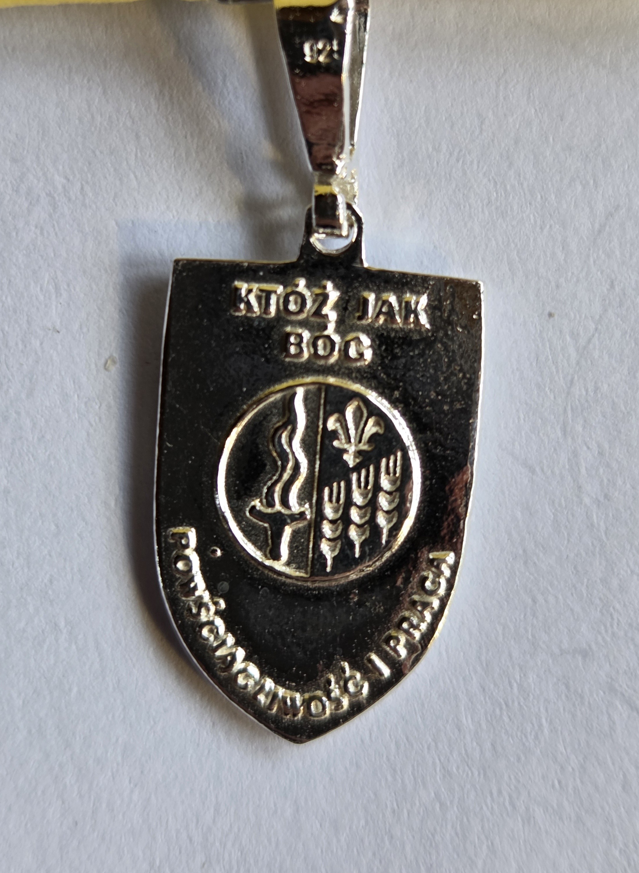 Na rewersie wytłoczone są michalickie wezwania: "KTÓŻ JAK BÓG" oraz "POWŚCIĄGLIWOŚĆ I PRACA".